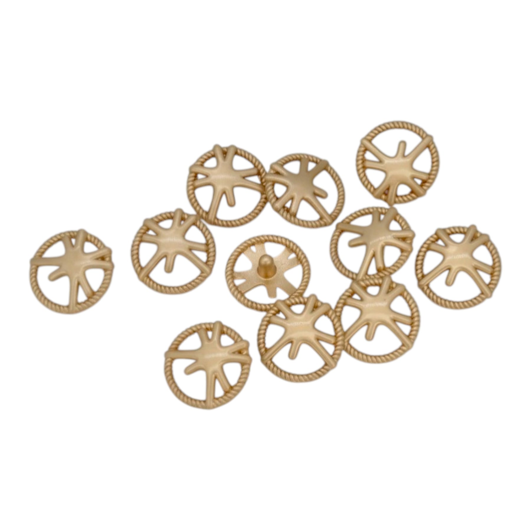 Enhance your garments with Shining Star Design Rope Edge Shank Metal Button, perfect for adding a premium, eye-catching look. These buttons are both stylish and durable, and come in matte silver & matte gold color with an edge-to-edge design, crafted from premium, high-quality metal.
