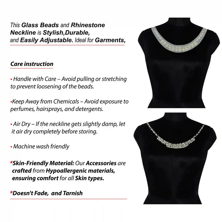 This neckline is in versatile design. This stylish accessory enhances the look of garments and gives a premium touch to them. Its stylish and modern aesthetic adds a sophisticated touch to any outfit, instantly enhancing the overall look. This neckline is durable and long-lasting. The rich, vibrant colors are fade-resistant, ensuring the neckline retains its flawless appearance over time, even with frequent wear. It does not lose colors made from high-quality premium material. Whether you're aiming for a casual or formal style, this accessory delivers a premium feel, combining fashion and functionality seamlessly.