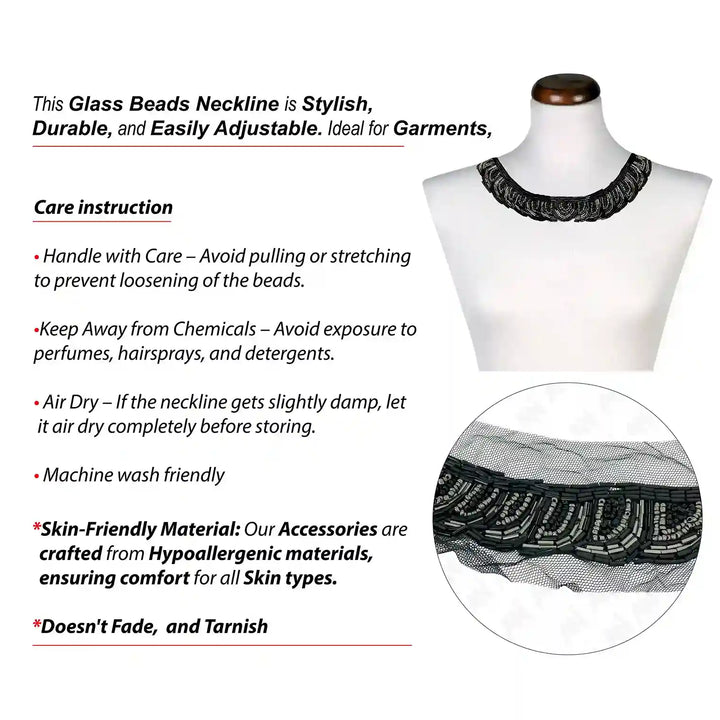This neckline is in versatile design. This stylish accessory enhances the look of garments and gives a premium touch to them. Its stylish and modern aesthetic adds a sophisticated touch to any outfit, instantly enhancing the overall look. This neckline is durable and long-lasting. The rich, vibrant colors are fade-resistant, ensuring the neckline retains its flawless appearance over time, even with frequent wear. It does not lose colors made from high-quality premium material. Whether you're aiming for a casual or formal style, this accessory delivers a premium feel, combining fashion and functionality seamlessly.