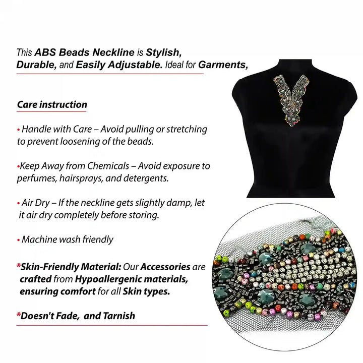 This neckline is in versatile design. This stylish accessory enhances the look of garments and gives a premium touch to them. Its stylish and modern aesthetic adds a sophisticated touch to any outfit, instantly enhancing the overall look. This neckline is durable and long-lasting. The rich, vibrant colors are fade-resistant, ensuring the neckline retains its flawless appearance over time, even with frequent wear. It does not lose colors made from high-quality premium material. Whether you're aiming for a casual or formal style, this accessory delivers a premium feel, combining fashion and functionality seamlessly.