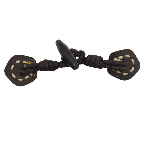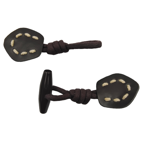 Toggle buttons consist of a of a toggle and two loops of rope or fabric; it's a type of fastener. To fasten toggle buttons, they are passed through one loop to the other, and they secure the garment or items. These buttons are known for their distinctive appearance and functional design, often adding a nautical or rustic touch to clothing.