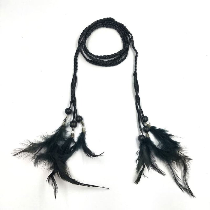 - This clearheaded-looking dark cord rope braided belt alongside dark nylon feathers decorations on the two closures is enhanced with gunmetal globules for an ideal completion and which likewise adds additional jingles and shine to the belt. Basic yet elegant and simple to coordinate with your day-to-day wear.