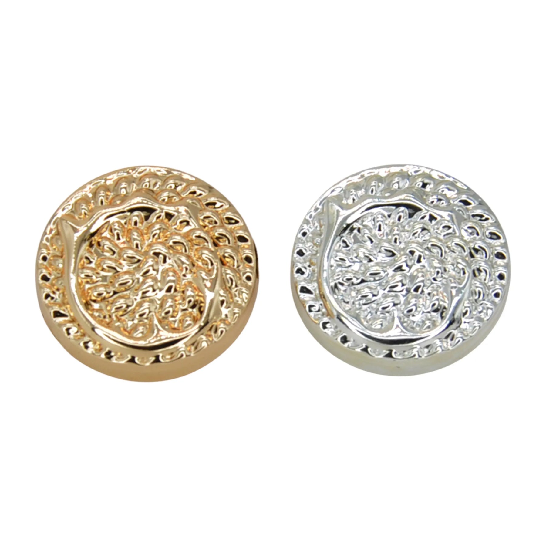 Enhance your garments with Hammered Circle Metal Button, perfect for adding a premium, eye-catching look. These buttons are both stylish and durable, and come in an antique silver & gold color with an edge-to-edge design, crafted from premium, high-quality metal.