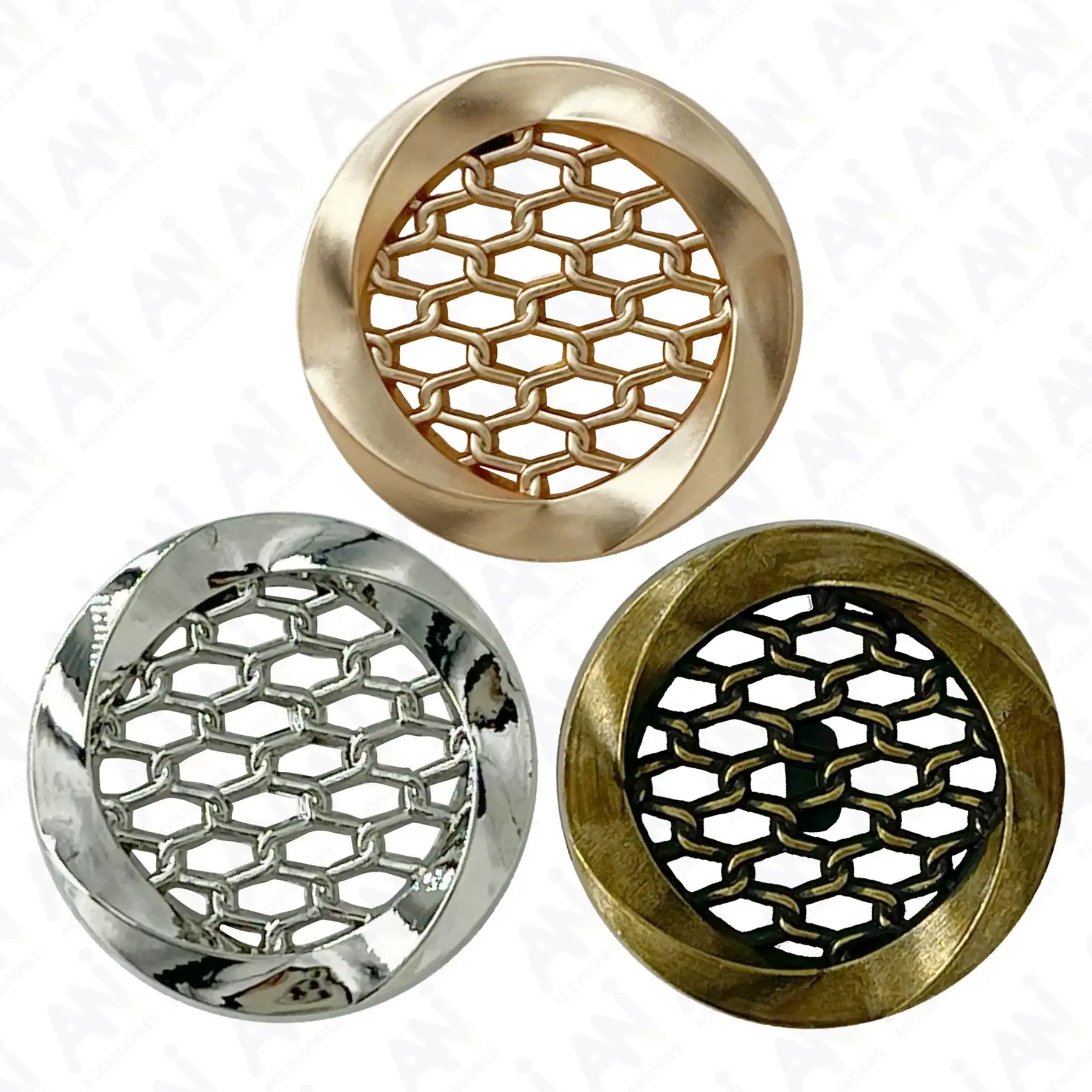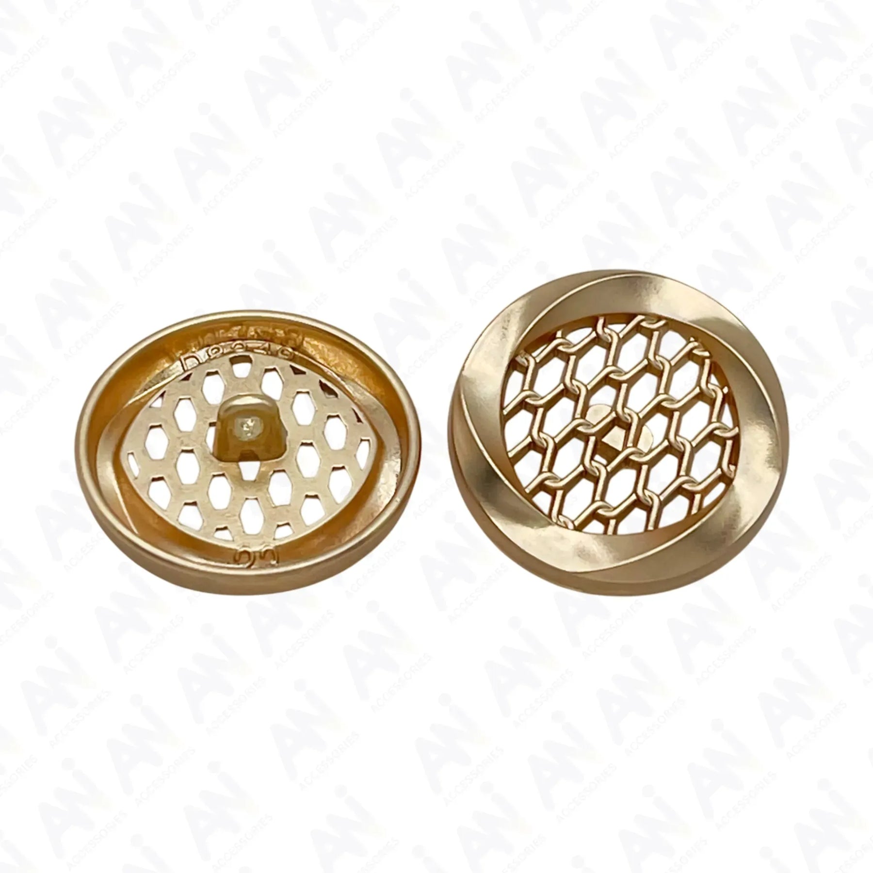 Enhance your garments with Honeycomb Metal Buttons, perfect for adding a premium, eye-catching look. These buttons are both stylish and durable, and come in antique gold silver & gold color with an edge-to-edge design, crafted from premium, high-quality metal.
