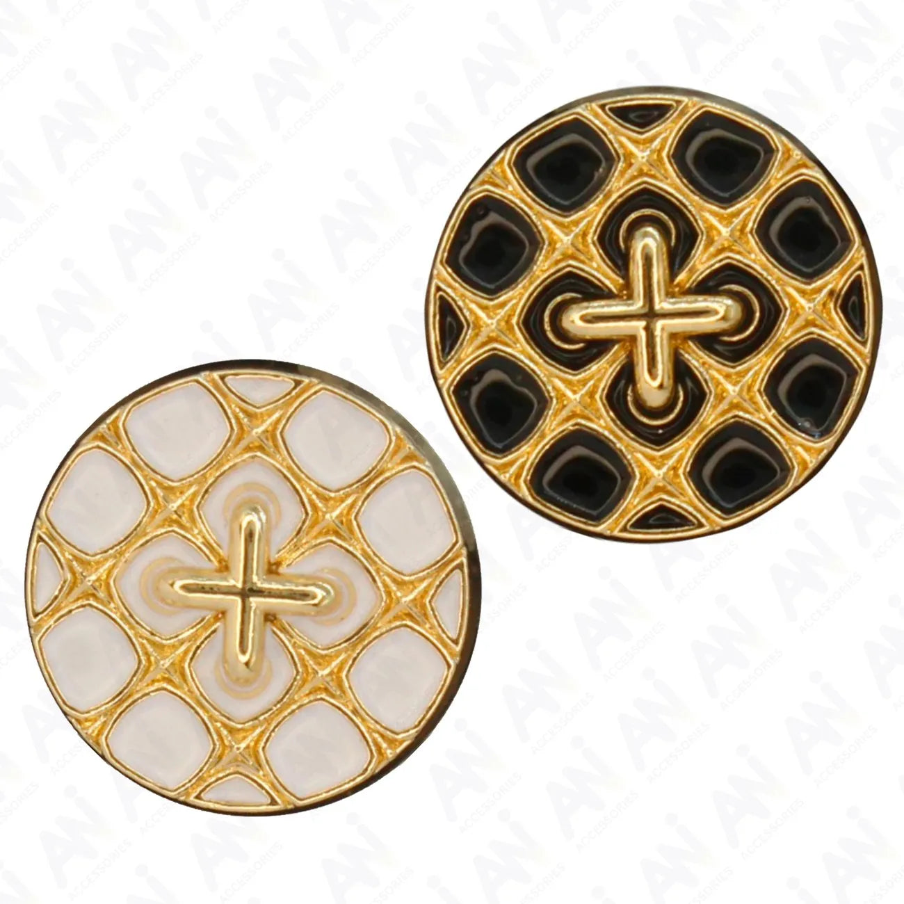 Enhance your garments with Monochrome Cross Design Metal Buttons, perfect for adding a premium, eye-catching look. These buttons are both stylish and durable, and come in gold black & gold white color with an edge-to-edge design, crafted from premium, high-quality metal.