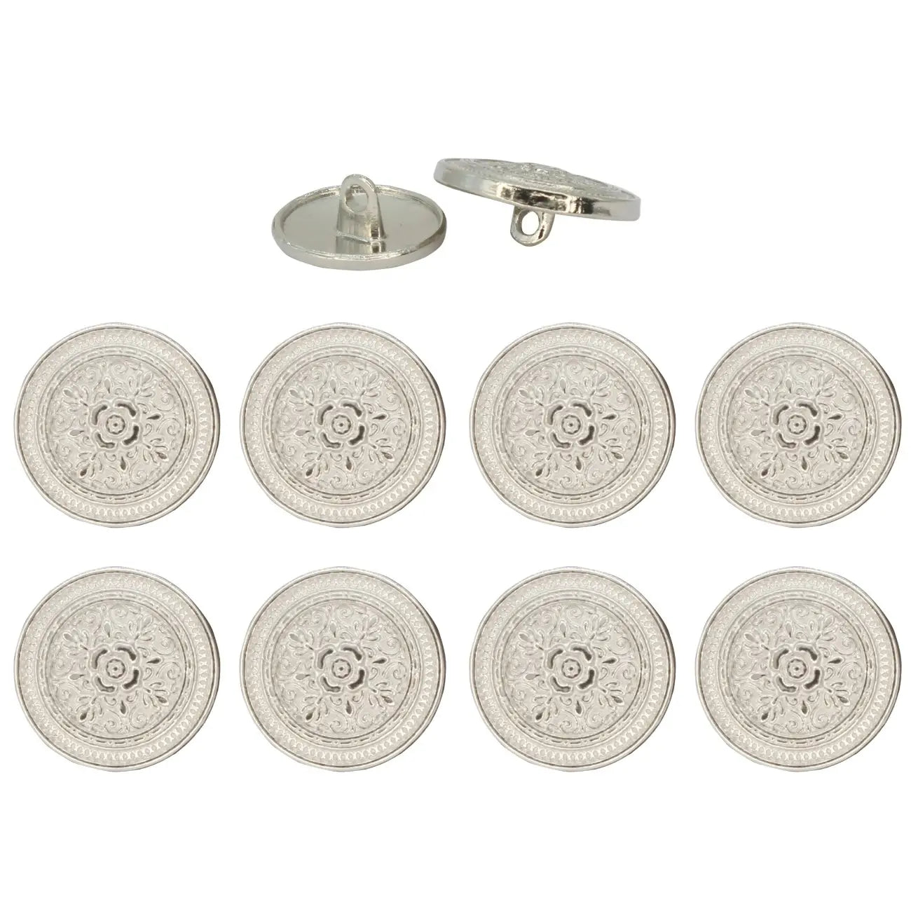 Enhance your garments with Elegant Design Metal Buttons, perfect for adding a premium, eye-catching look. These buttons are both stylish and durable, and come in silver color with an edge-to-edge design, crafted from premium, high-quality metal.