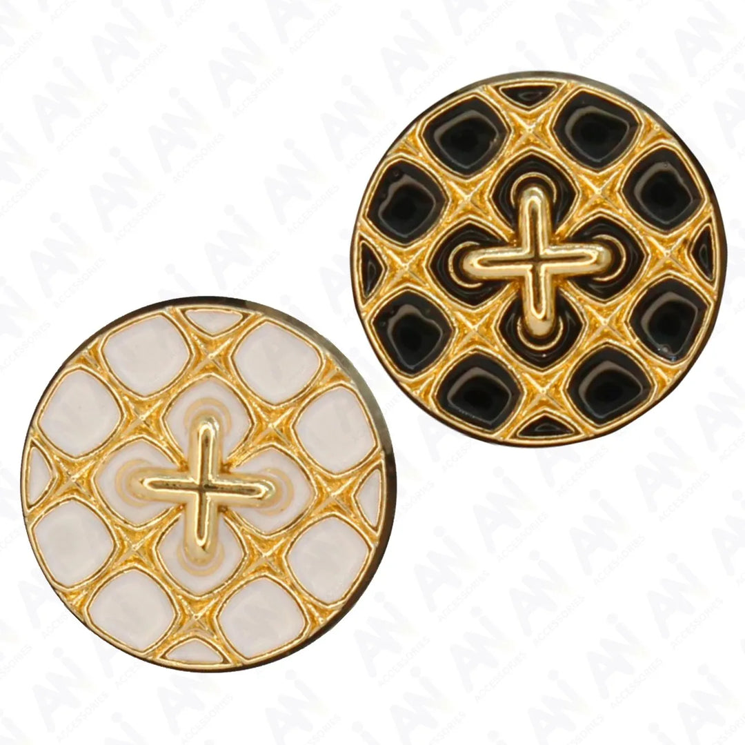 Monochrome Cross Design Metal Buttons | 12mm(20L) & 18mm(28L)