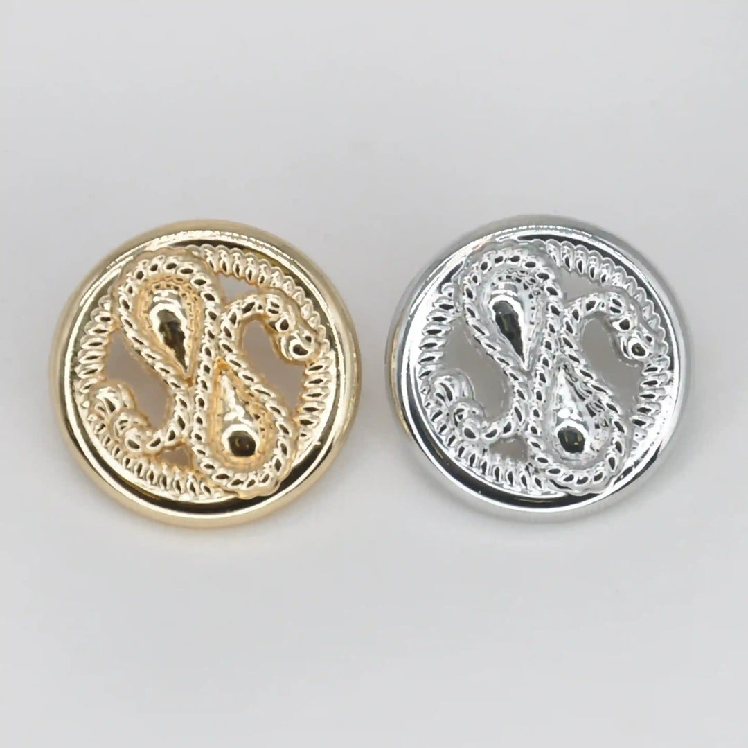 Discover our premium metal metal buttons in stylish designs and finishes—available in gold, silver, antique gold, nickel, gunmetal, and more. Sizes include 18mm, 20mm, 21 mm, and beyond.
