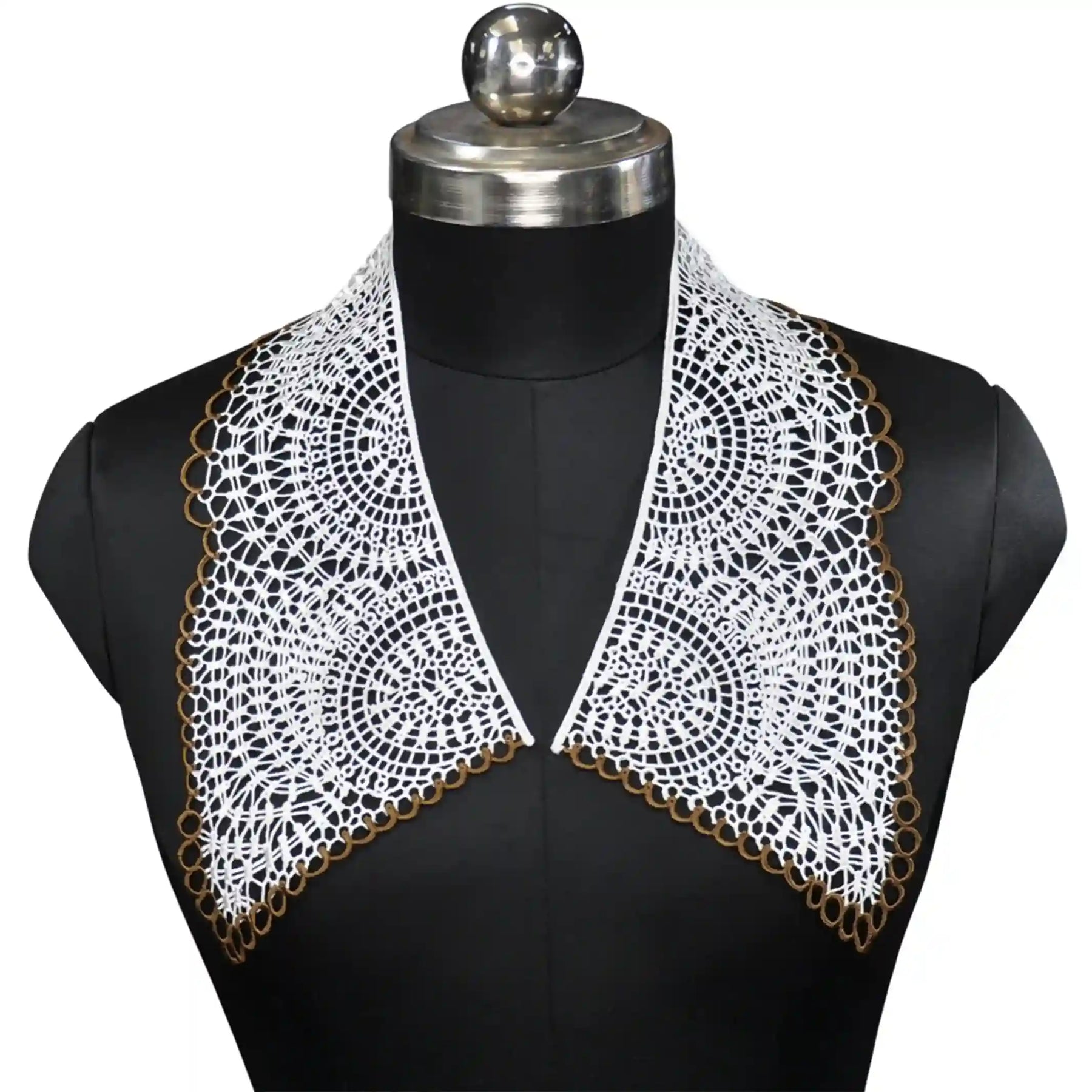This sew-on neckline collar is made from good-quality fabric with beautiful embroidery and cutwork designs. It is perfect for making dresses, kurtis, blouses, tops, gowns, and ethnic wear look more stylish. You can easily stitch it onto any garment for an instant new look. Great for DIY projects, costumes, or giving old clothes a fresh and classy touch.