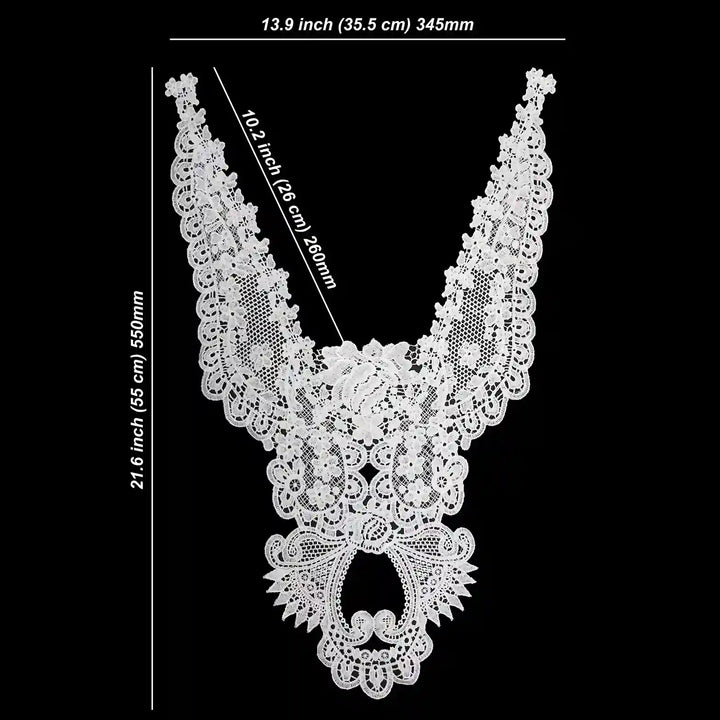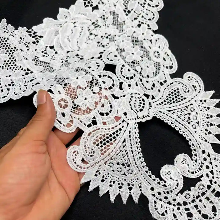 Elevate any garment with this elegant full-body floral lace. Made from premium, skin-friendly material, it features symmetrical panels for a high-fashion look and is ready to sew onto any fabric. Classic white, perfect for dyeing or bridal wear.