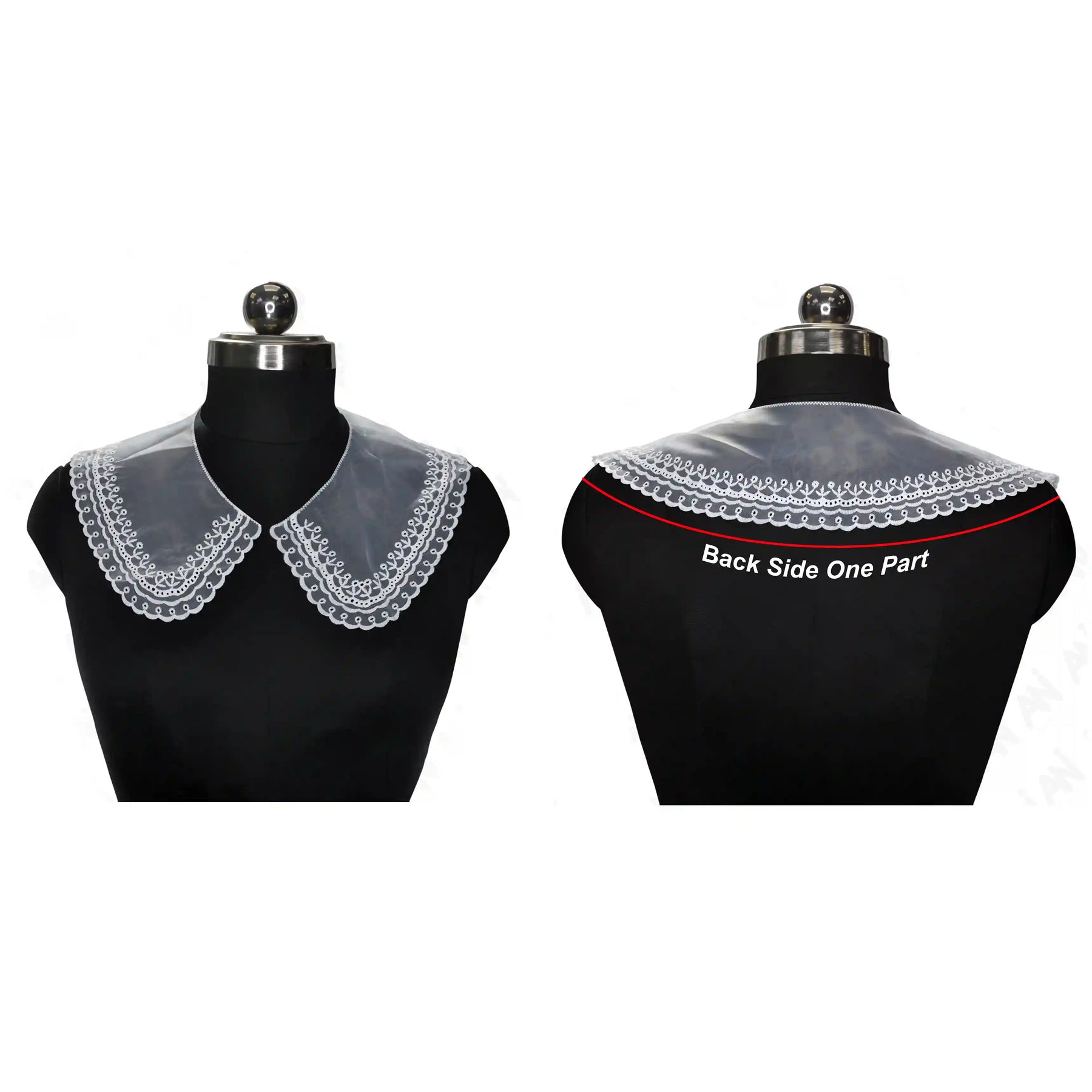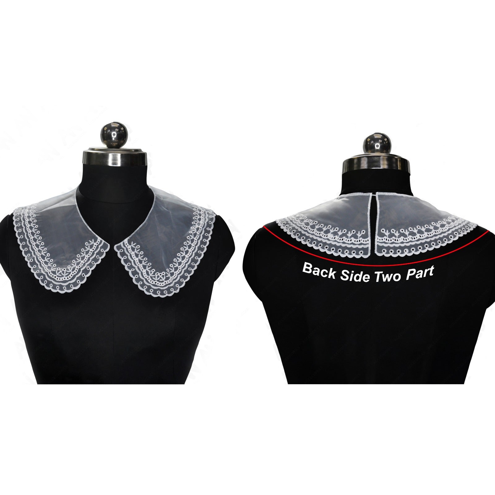 This sew-on neckline collar is made from good-quality fabric with beautiful embroidery and cutwork designs. It is perfect for making dresses, kurtis, blouses, tops, gowns, and ethnic wear look more stylish. You can easily stitch it onto any garment for an instant new look. Great for DIY projects, costumes, or giving old clothes a fresh and classy touch.