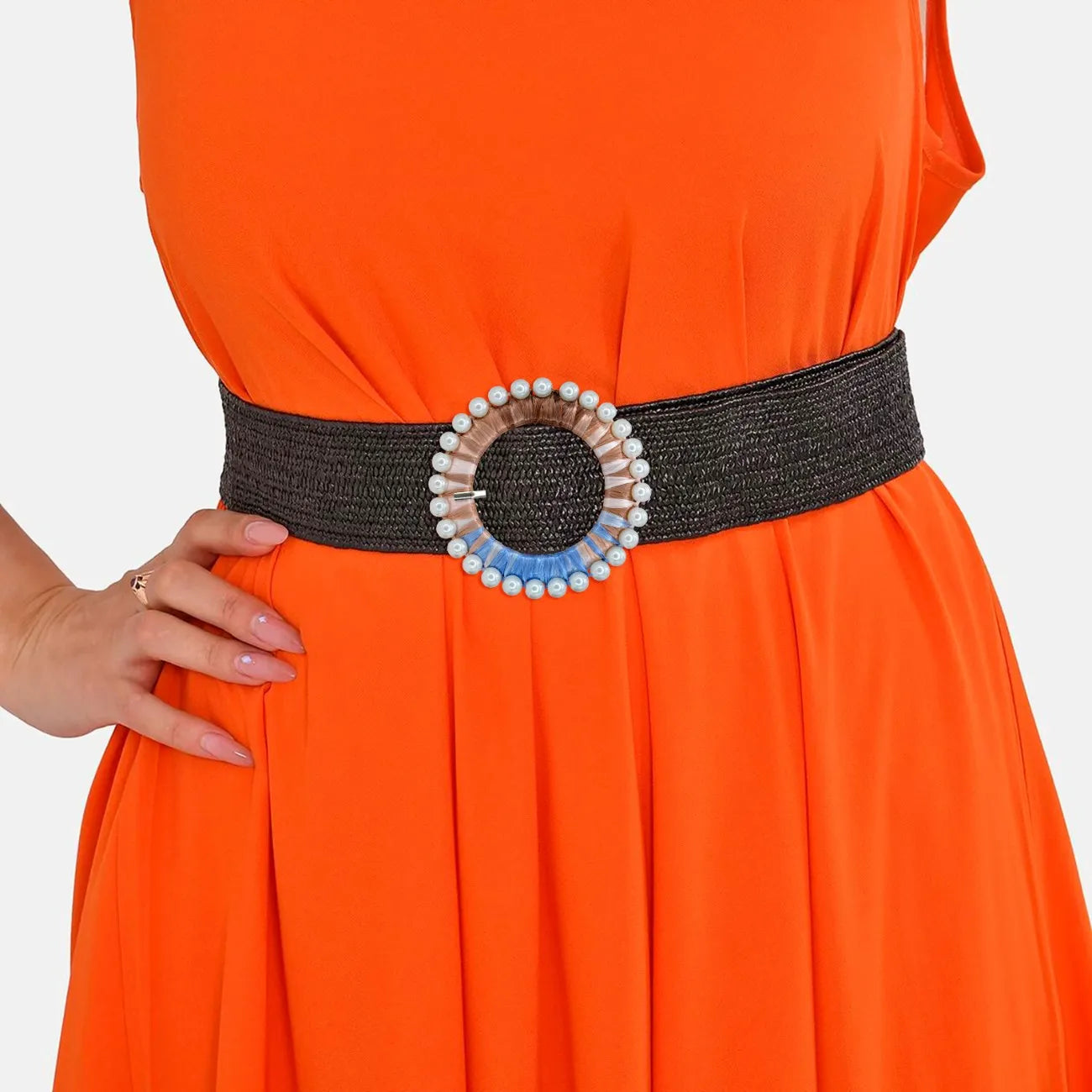 Multicolor Raffia Pearl Ring Buckle | 3.3 inches (8.5cm)