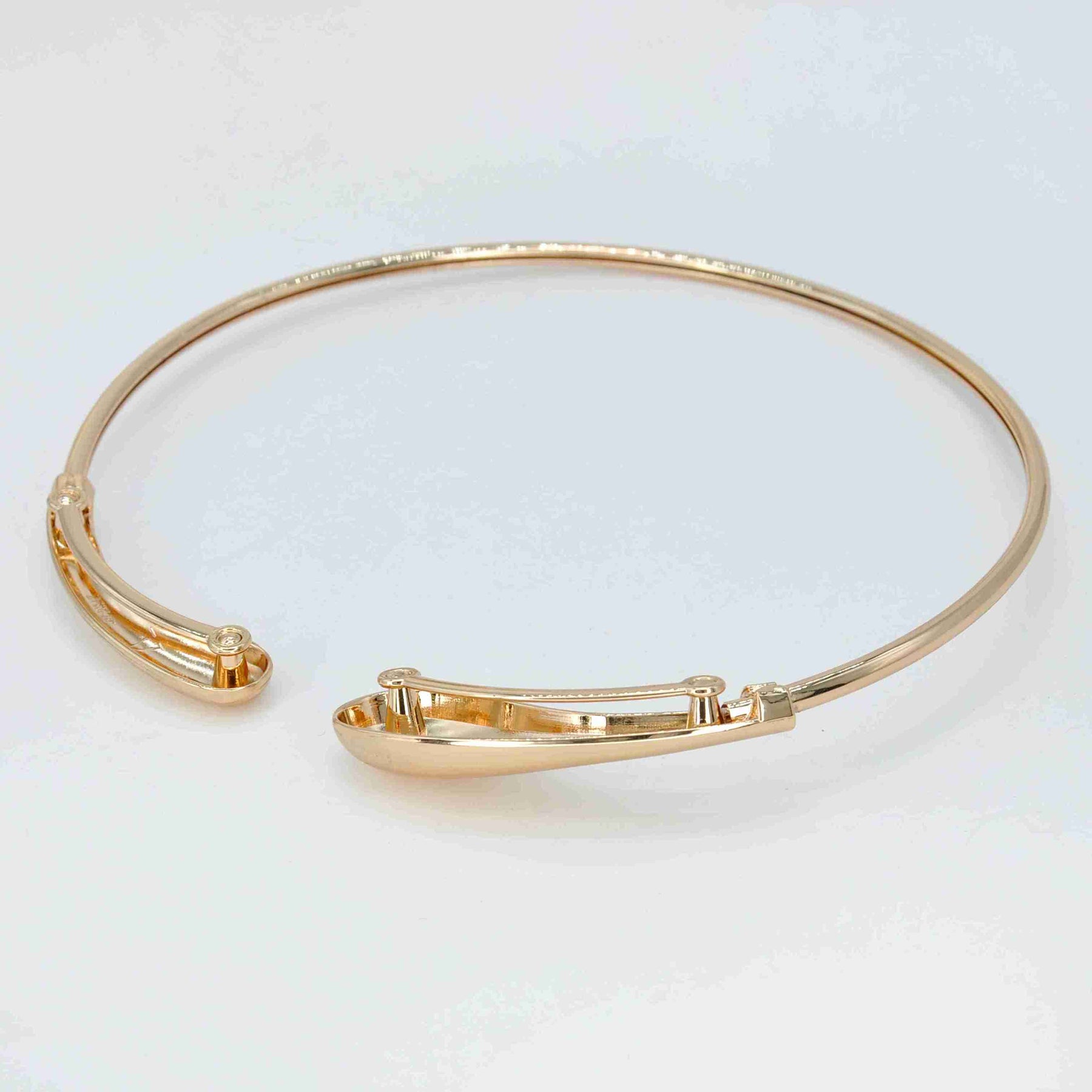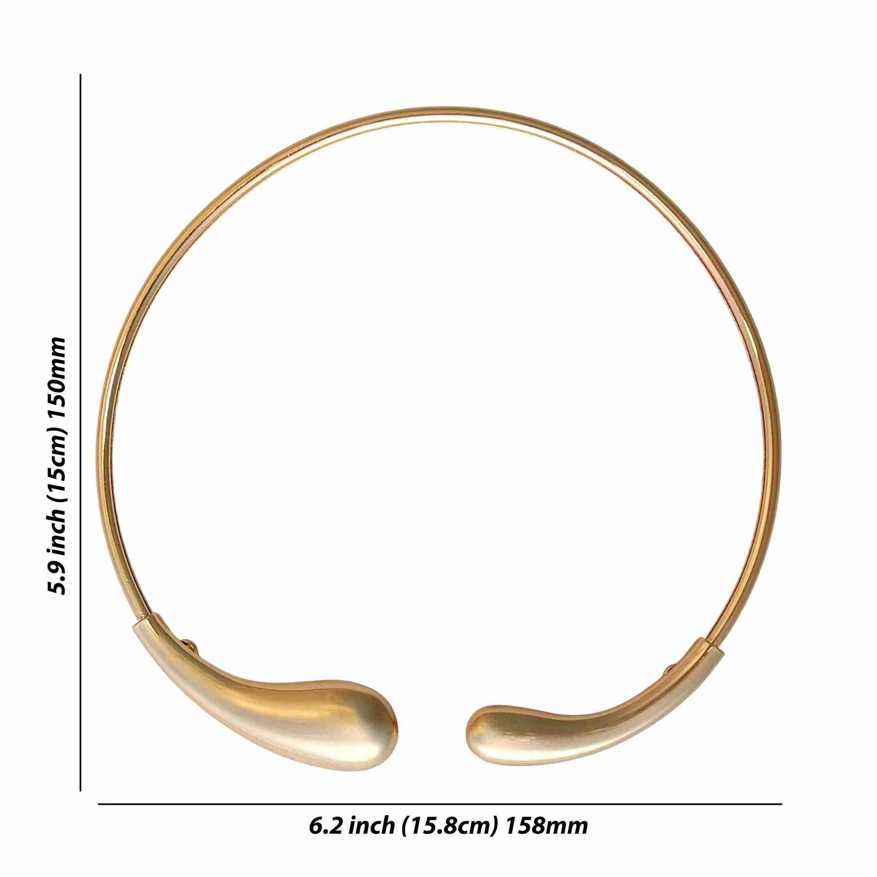 Elevate your style with this gold-tone open collar choker necklace, designed to make a bold and sophisticated statement. Featuring a sleek minimalistic silhouette with sculpted teardrop ends, it sits gracefully around the neckline, adding instant glamour to any outfit. Perfect for pairing with evening gowns, cocktail dresses, or modern chic ensembles, this choker is a must-have accessory for women who love contemporary luxury.