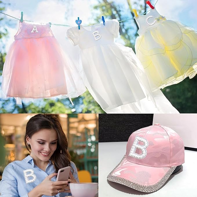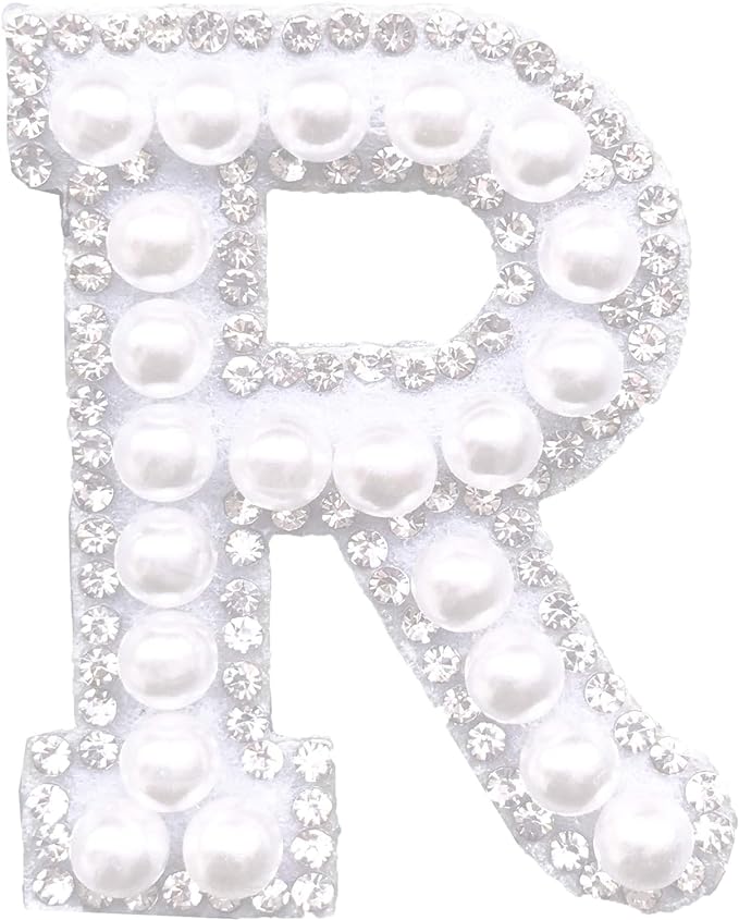 Letter R White Pearl Rhinestone Hot fix Or Sew Patch