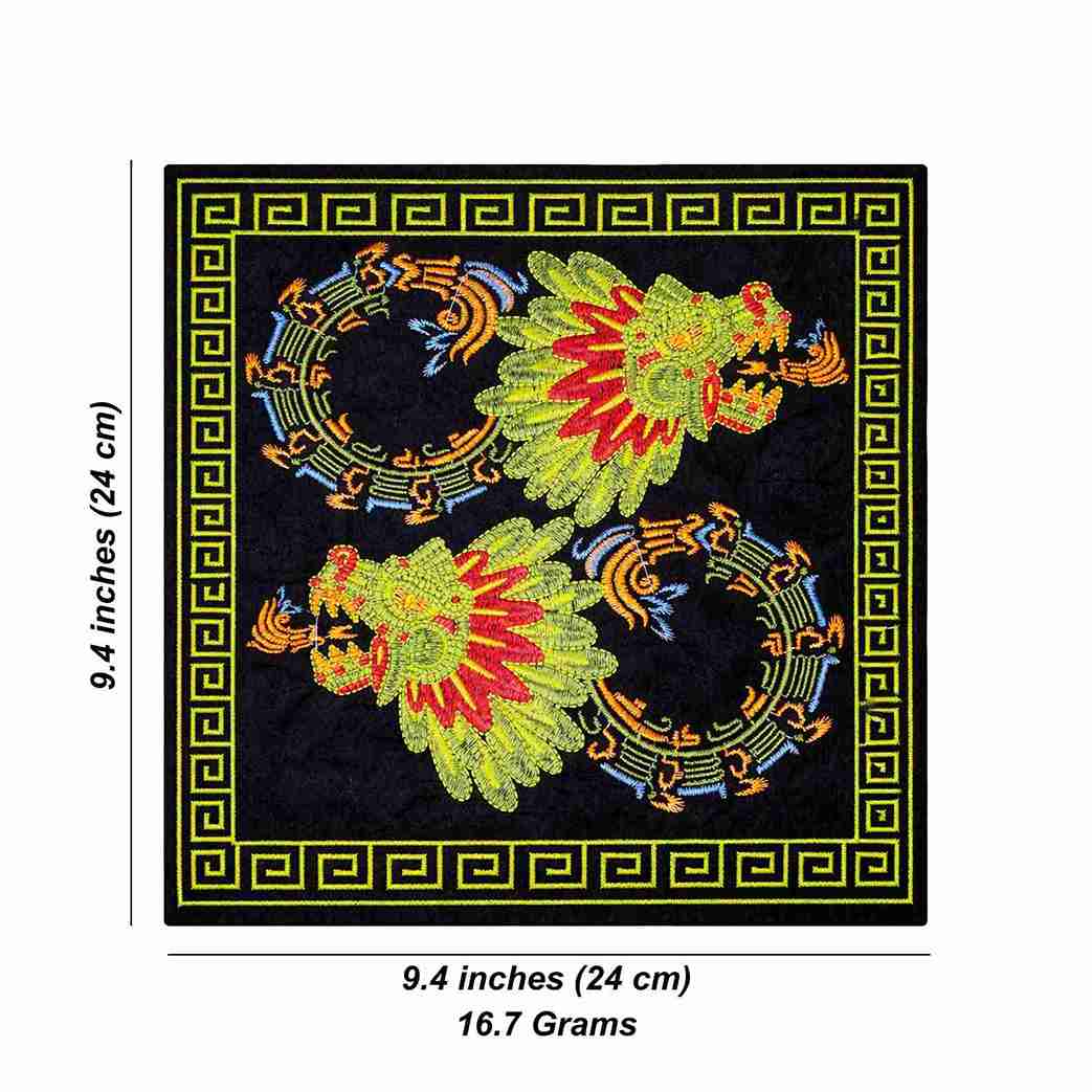 Enhance your fashion style with a Mayan Style Dragon Artwork. The patch is made with high-premium-quality thread embroidery for a realistic look, and the textured detailing is highly intricate. This hot-fix patch is easy to apply to clothing.