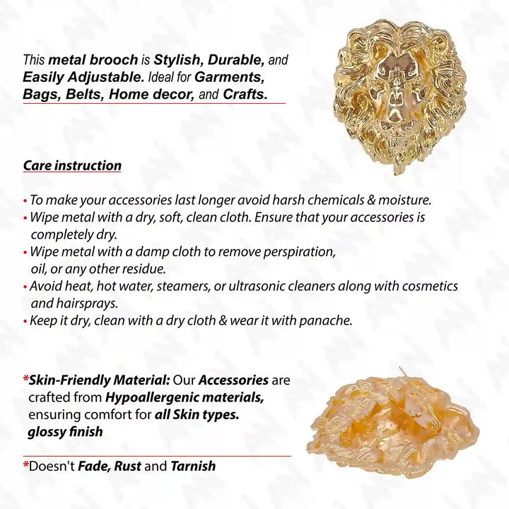Ani Accessories Gold Lion Brooch with Intricate Detailing for Elegant Accessories