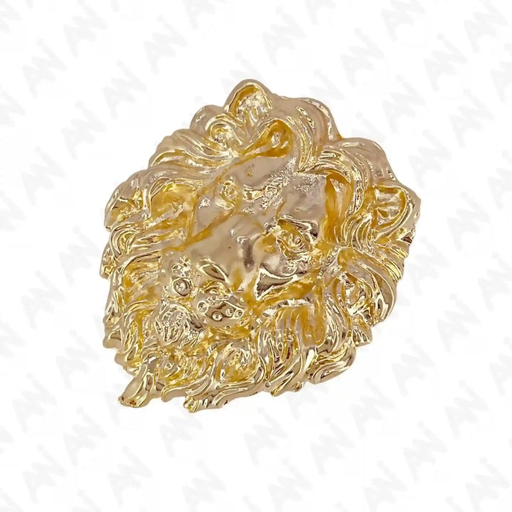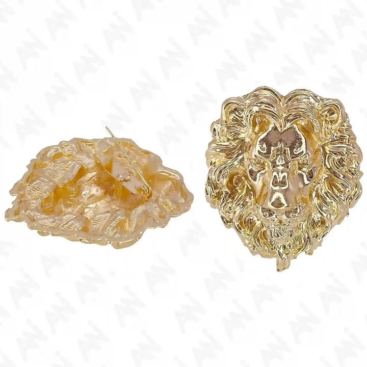 Gold lion brooch from Ani Accessories featuring intricate design and luxurious shine
