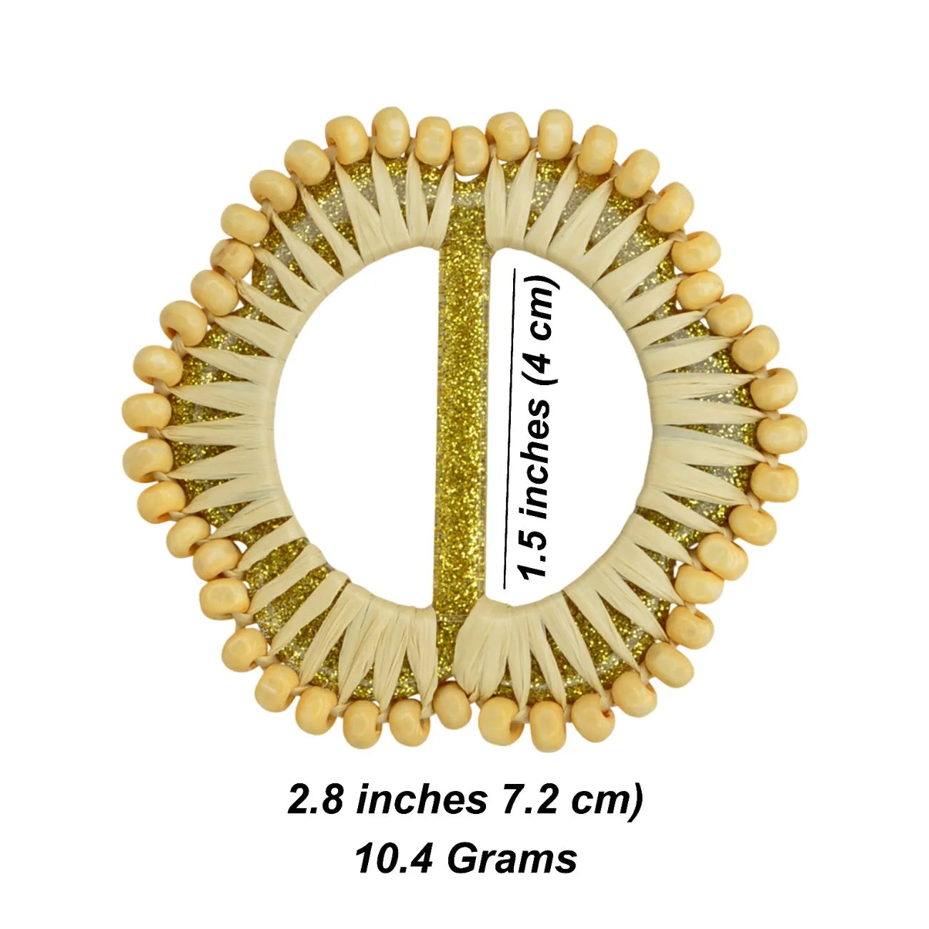 Mustard Raffia Round Buckle with Wooden Beads | 2.8 inches (7.2cm)