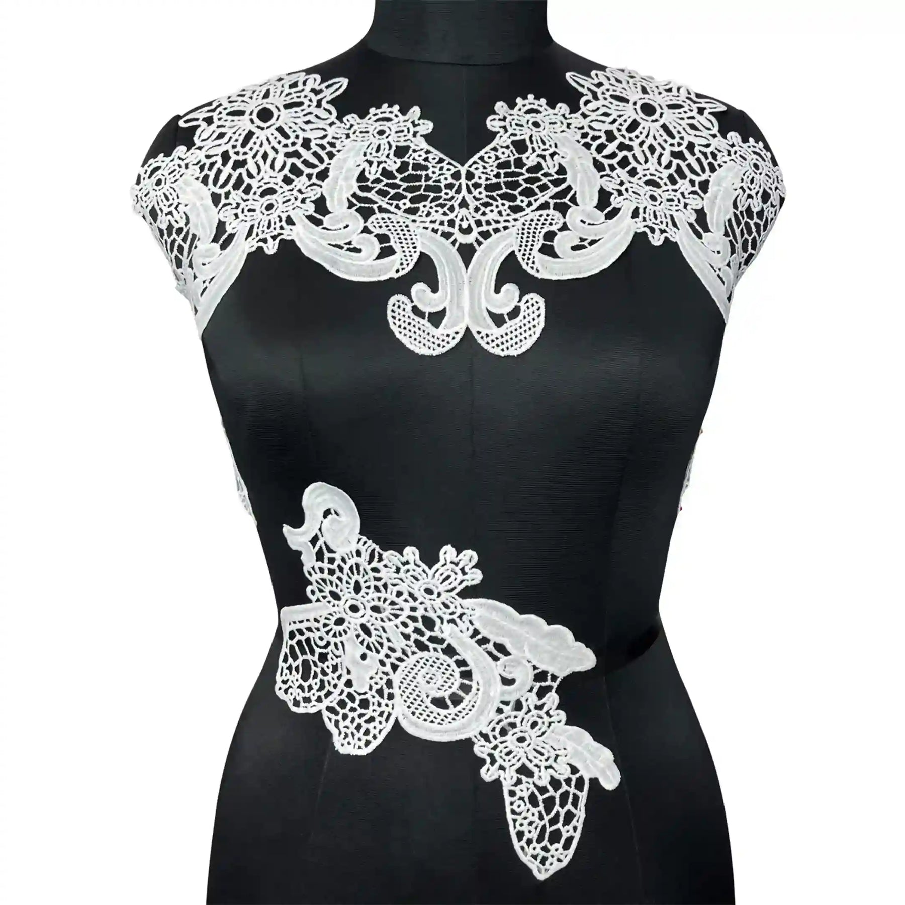 Elevate any garment with this elegant full-body floral lace. Made from premium, skin-friendly material, it features symmetrical panels for a high-fashion look and is ready to sew onto any fabric. Classic white, perfect for dyeing or bridal wear.