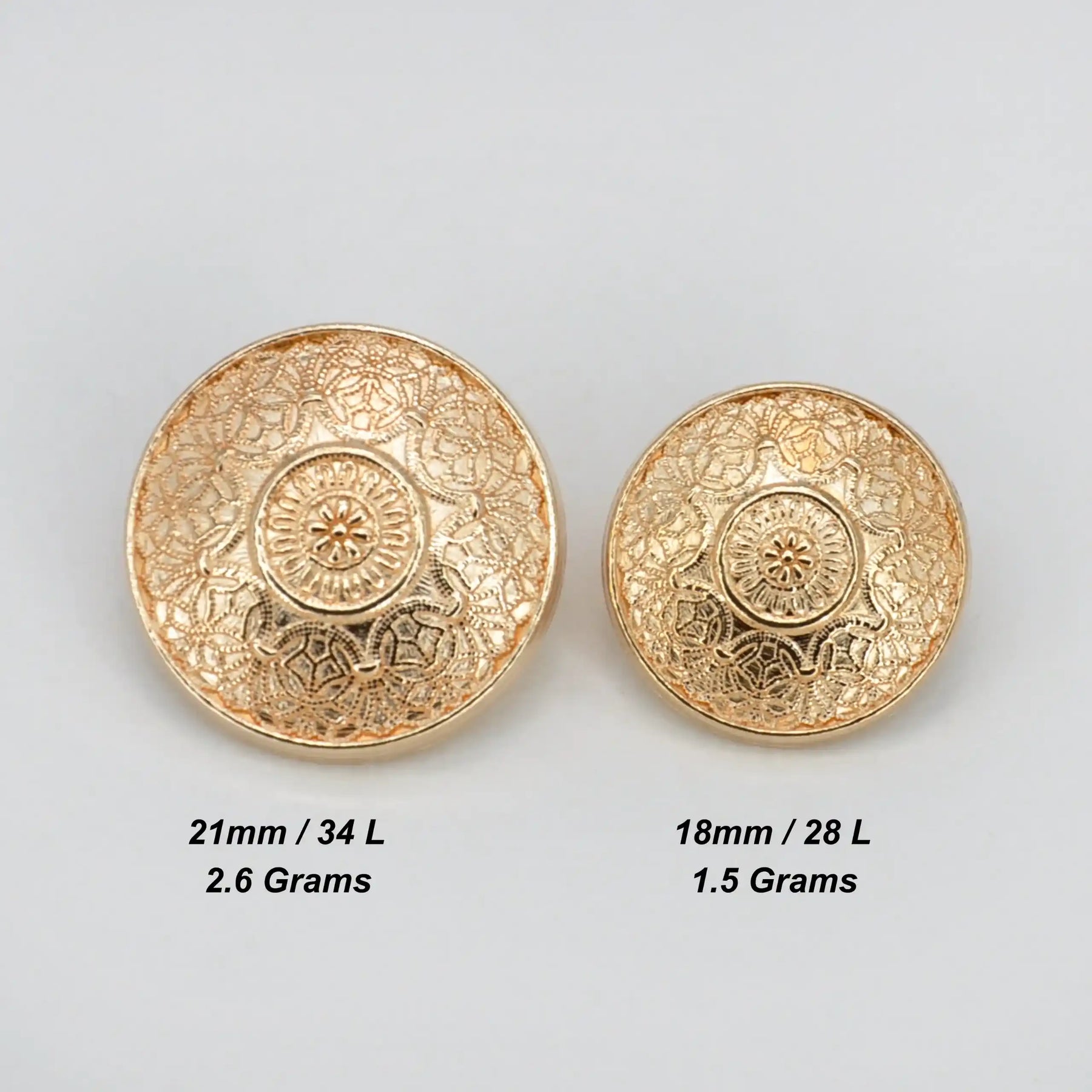 Enhance your garments with Traditional Gold Finish Metal Button, perfect for adding a premium, eye-catching look. These buttons are both stylish and durable, and come in an antique gold color with an edge-to-edge design, crafted from premium, high-quality metal.