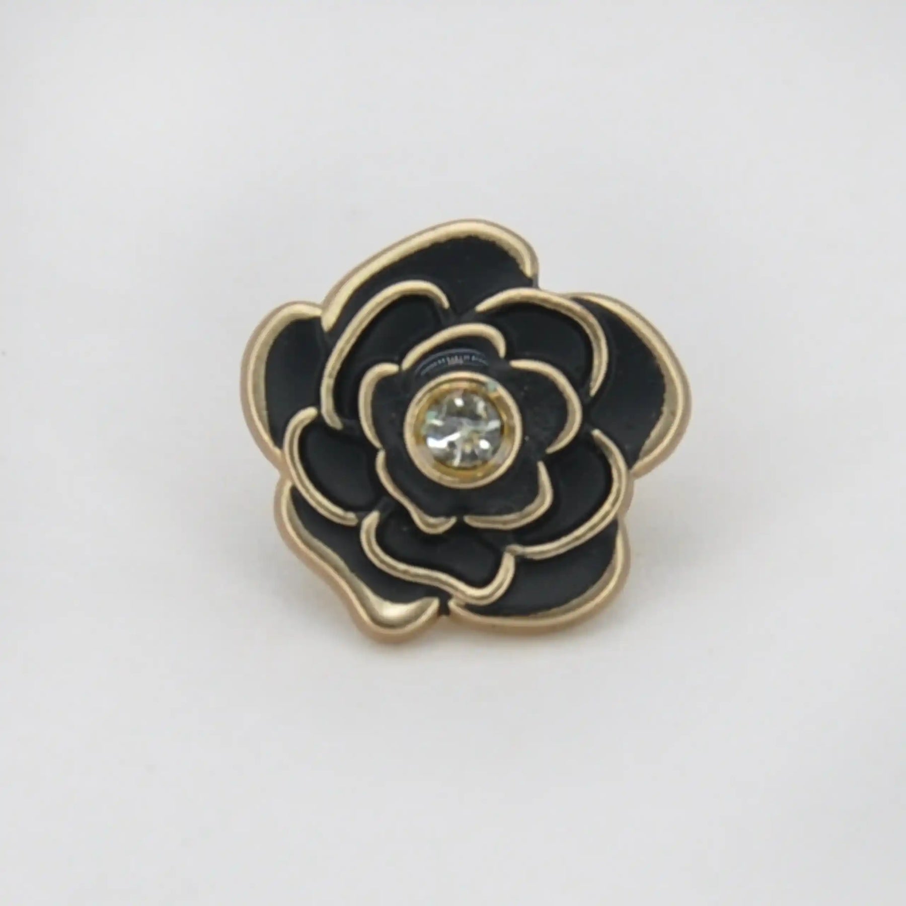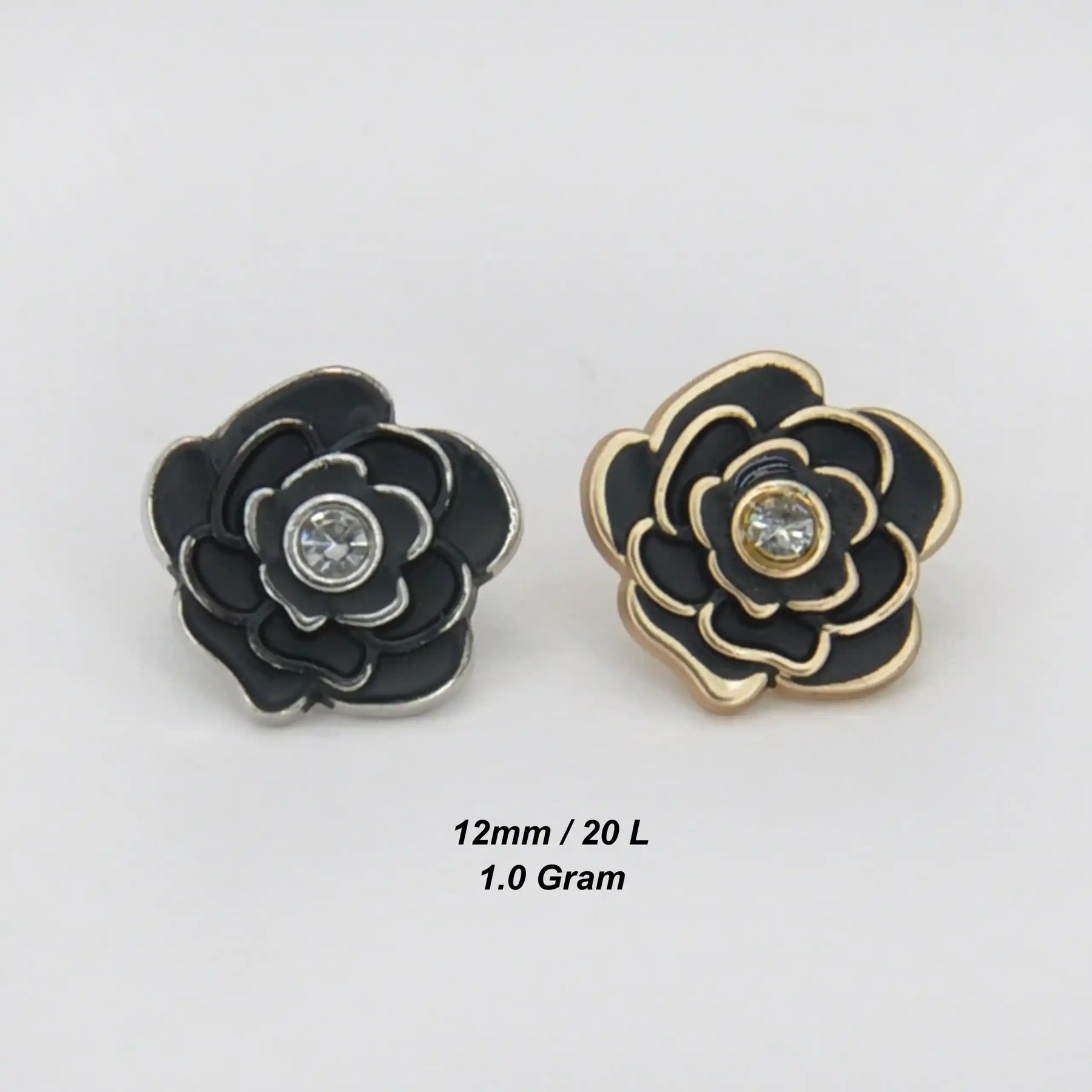 Enhance your garments with Premium Black Rose Metal Button Metal Button, perfect for adding a premium, eye-catching look. These buttons are both stylish and durable, and come in an antique black with silver & black with gold color with an edge-to-edge design, crafted from premium, high-quality metal.