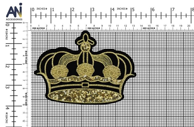 Sequins Imperial Crown Patch by Ani Accessories, backside showing detailed embroidery and sequins, premium royal applique for fashion outfits