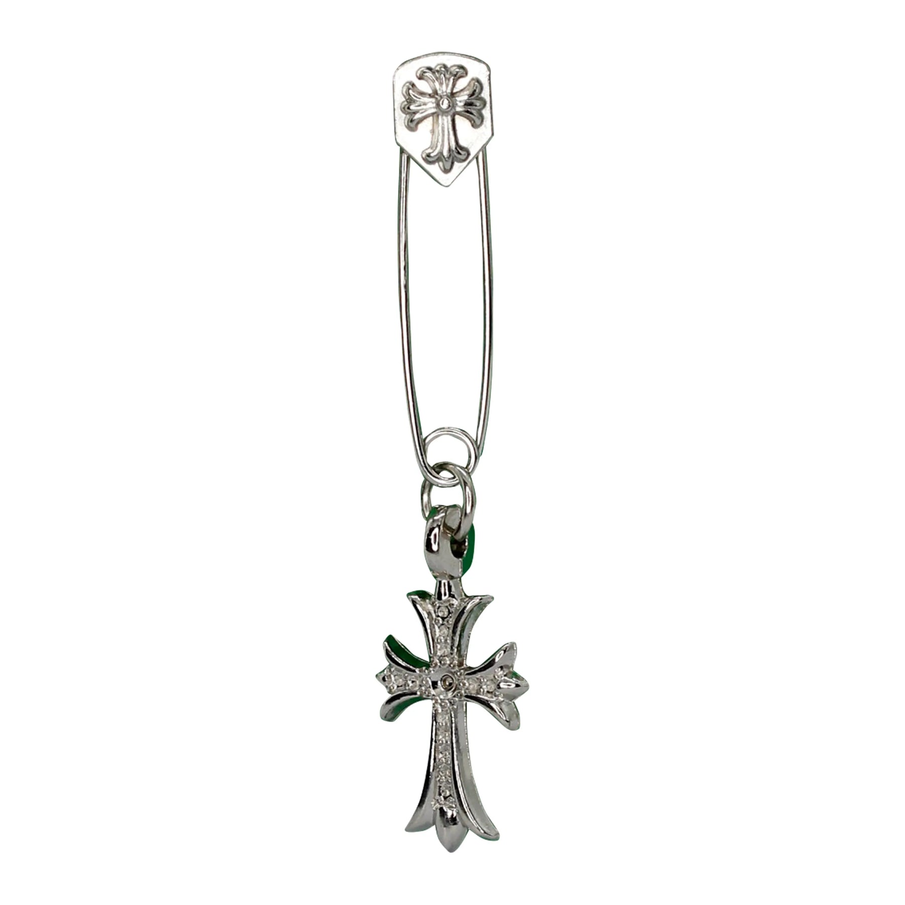 Silver cross metal brooch style safety pin with ANI Accessories branding on a white background