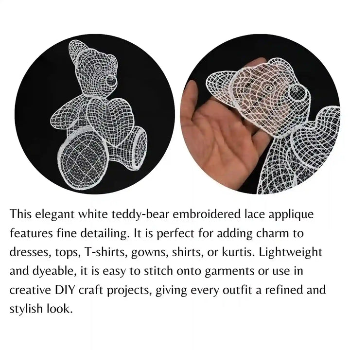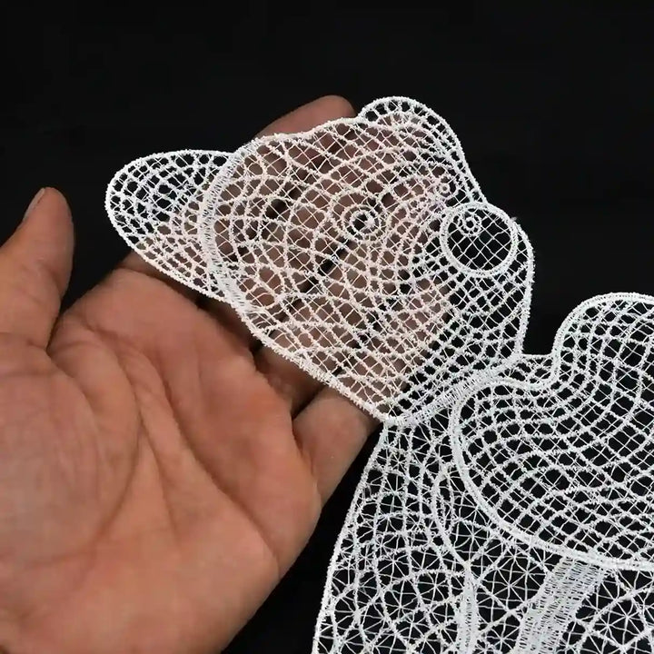 These are delicate embroidered lace applique patches crafted on a soft mesh or net base. They feature intricate open‑work designs, often inspired by floral, bow, or ornamental patterns. Lightweight and flexible, these patches are easy to sew or glue onto fabrics and are widely used for enhancing garments and accessories.