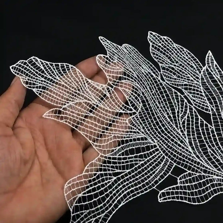 These are delicate embroidered lace applique patches crafted on a soft mesh or net base. They feature intricate open‑work designs, often inspired by floral, bow, or ornamental patterns. Lightweight and flexible, these patches are easy to sew or glue onto fabrics and are widely used for enhancing garments and accessories.