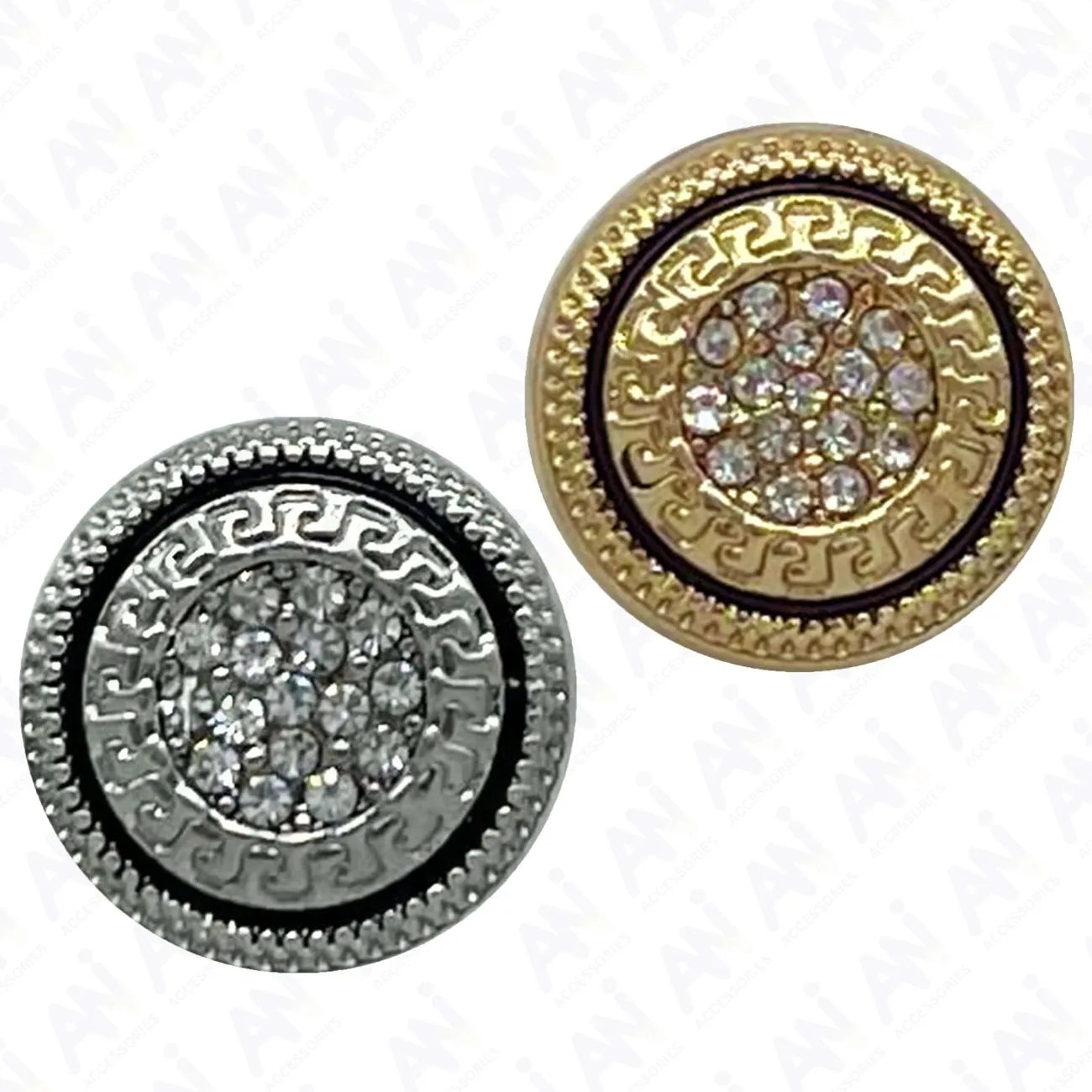 Enhance your garments with Greek Pattern Rhinestone Metal Shirt Buttons, perfect for adding a premium, eye-catching look. These buttons are both stylish and durable, and come in silver & gold color with an edge-to-edge design, crafted from premium, high-quality metal.