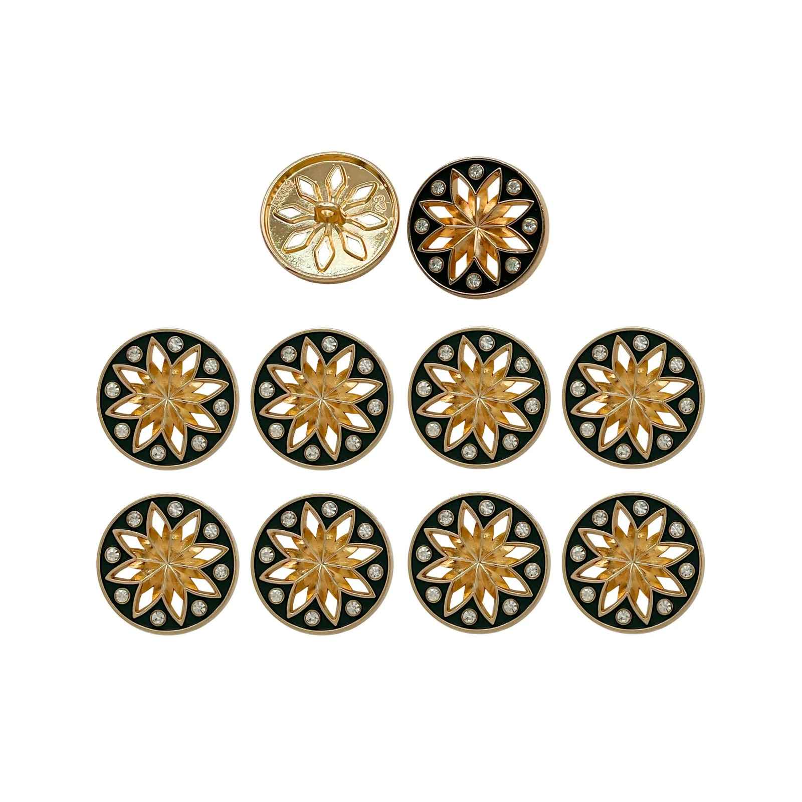 Enhance your garments with Elegant Star Metal Buttons, perfect for adding a premium, eye-catching look. These buttons are both stylish and durable, and come in Gold with black, gold with white & black with silver color with an edge-to-edge design, crafted from premium, high-quality metal.