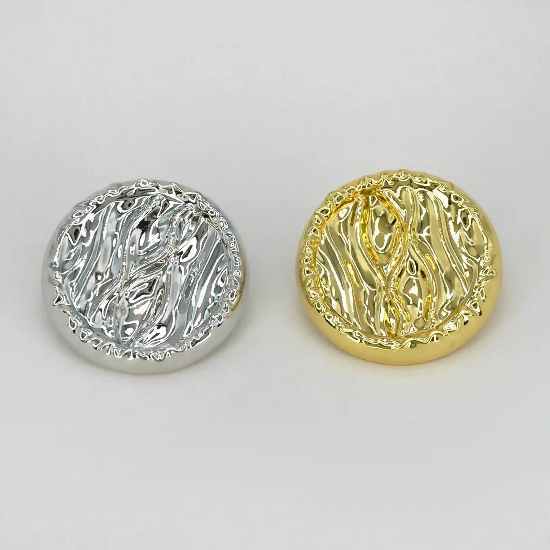 Enhance your garments with Fluid Wave Pattern Metal Button, perfect for adding a premium, eye-catching look. These buttons are both stylish and durable, and come in an antique silver & gold color with an edge-to-edge design, crafted from premium, high-quality metal.