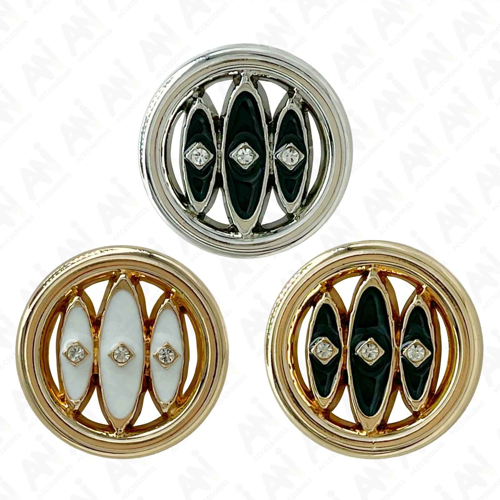 Enhance your garments with Shivay Eye Design Metal Button, perfect for adding a premium, eye-catching look. These buttons are both stylish and durable, and come in Gold white, Silver black & Gold black color with an edge-to-edge design, crafted from premium, high-quality metal.
