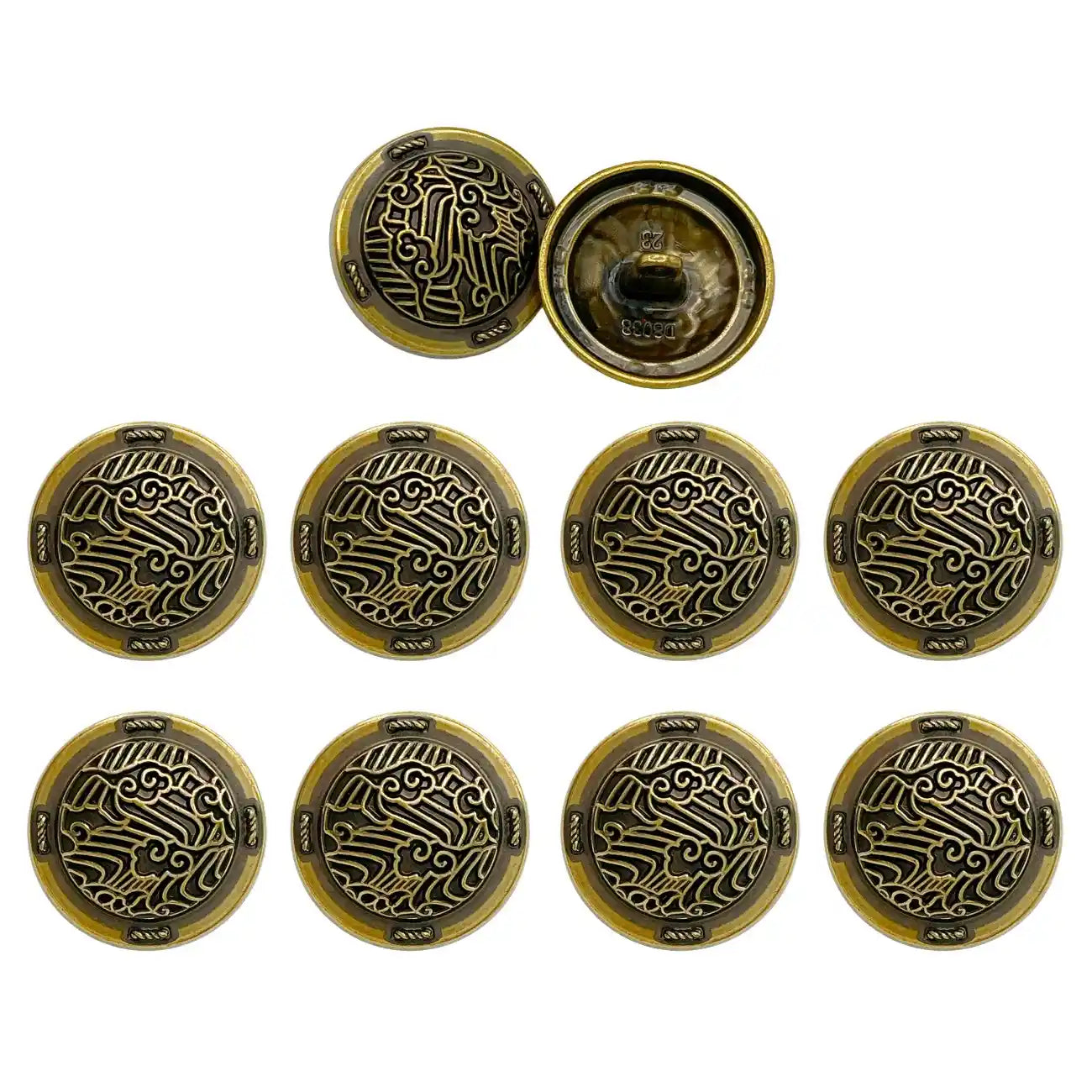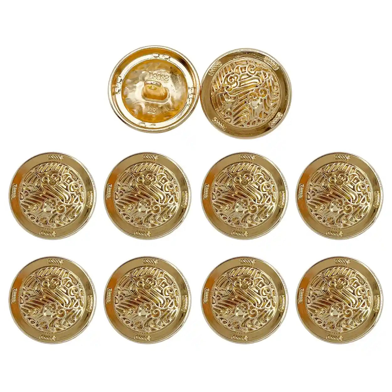 Enhance your garments with Shiny Decorative Metal Buttons, perfect for adding a premium, eye-catching look. These buttons are both stylish and durable, and come in an antique gold, silver & gold color with an edge-to-edge design, crafted from premium, high-quality metal.