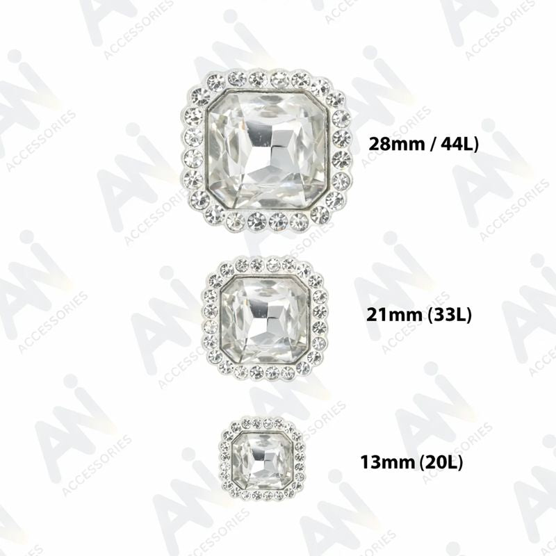 Elegant Rhinestone Silver Metal Buttons | 13mm, 21mm & 28mm