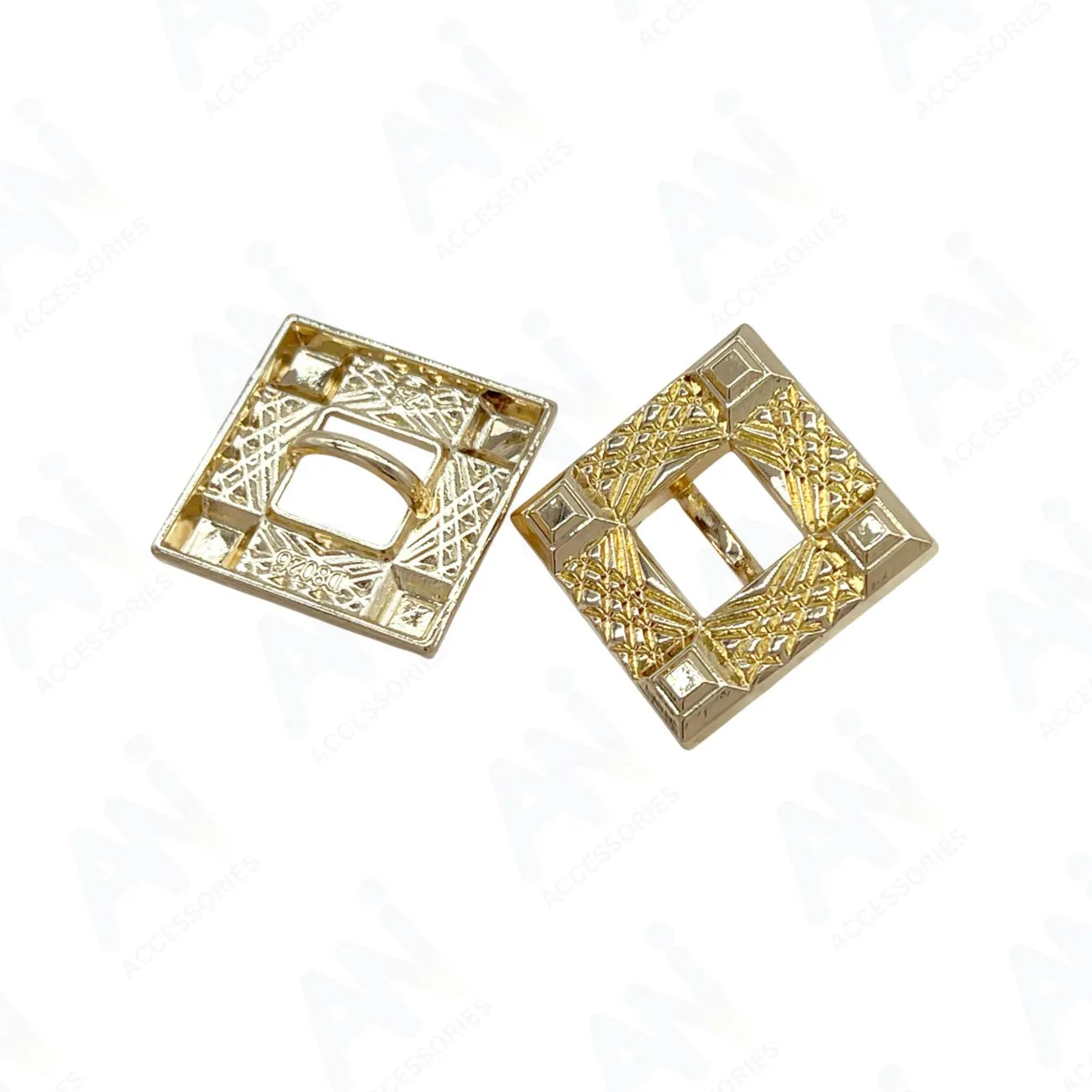 Enhance your garments with Intricate Square Metal Button, perfect for adding a premium, eye-catching look. These buttons are both stylish and durable, and come in an antique gold, silver & gold color with an edge-to-edge design, crafted from premium, high-quality metal.