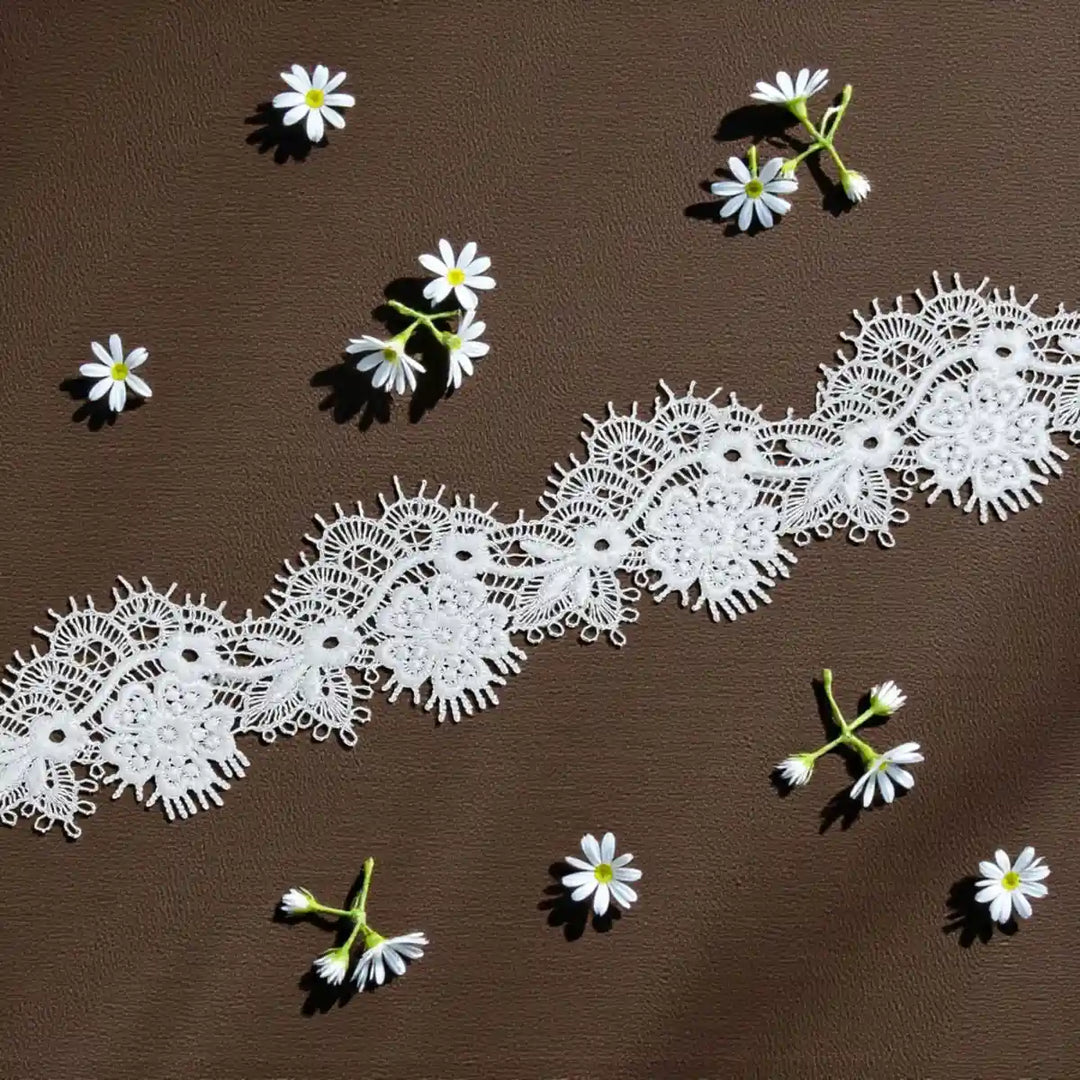 Elegant White Embroidered Floral Lace | Width 5cm ( 2 inches) 5mm