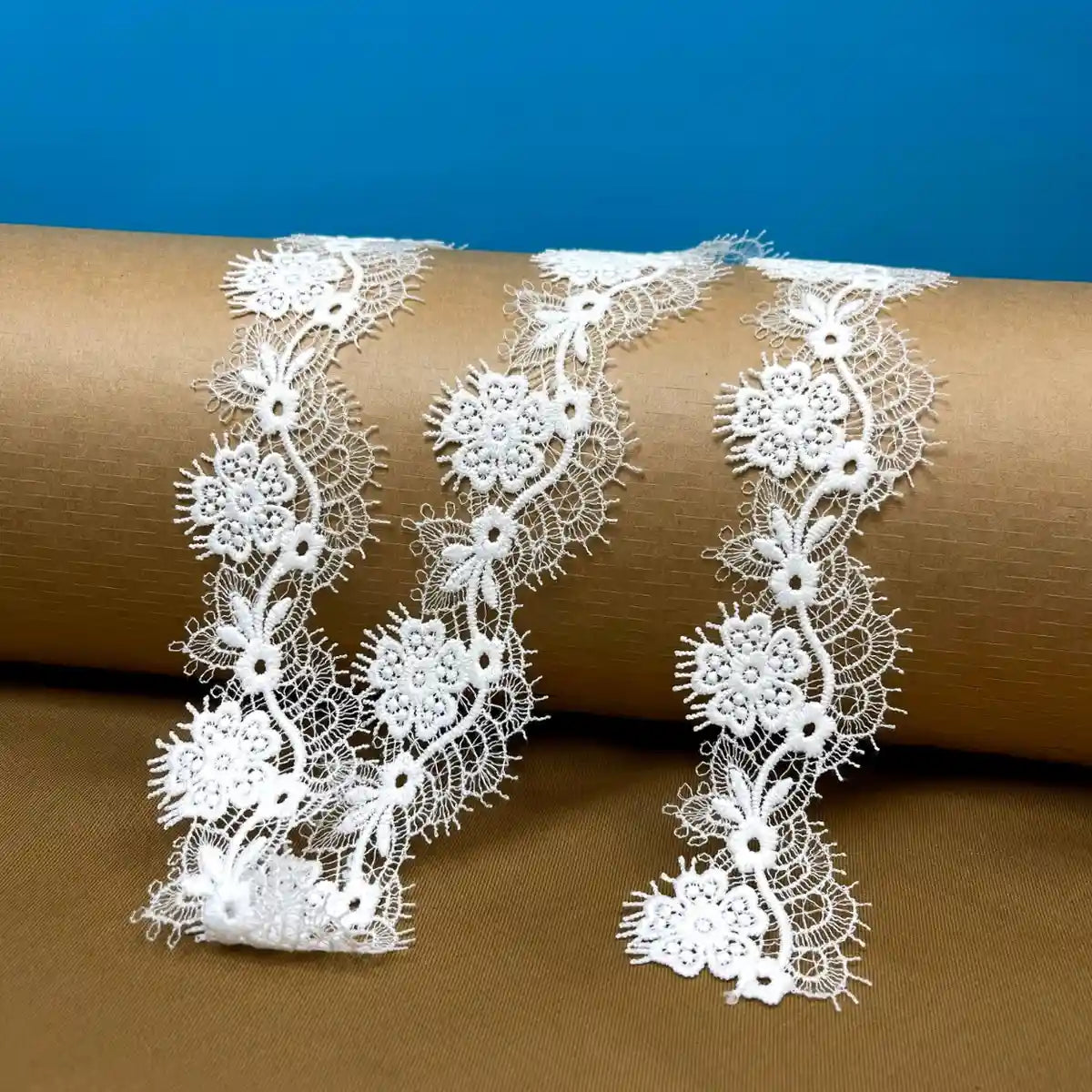 Elegant White Embroidered Floral Lace | Width 5cm ( 2 inches) 5mm