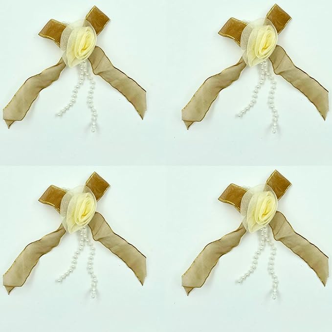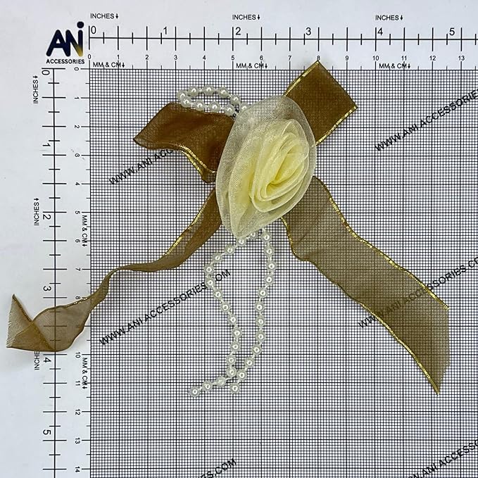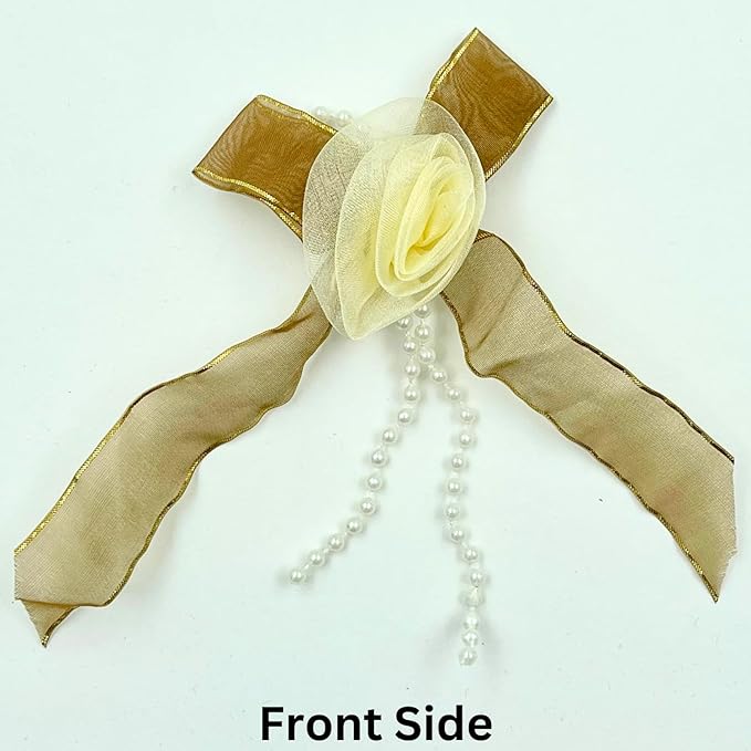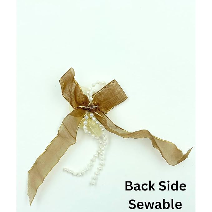 Beige and Yellow Floral Bow Design Sew Patch
