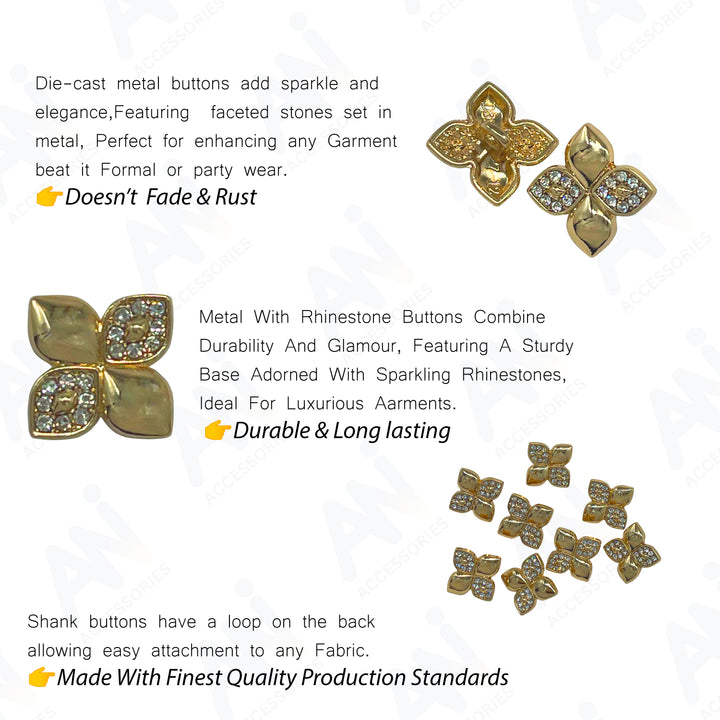 Enhance your garments with these metal buttons, perfect for adding a premium, eye-catching look. These buttons are fancy as well as durable and come in luxurious colors with edge-to-edge designs crafted from premium and high-quality material.