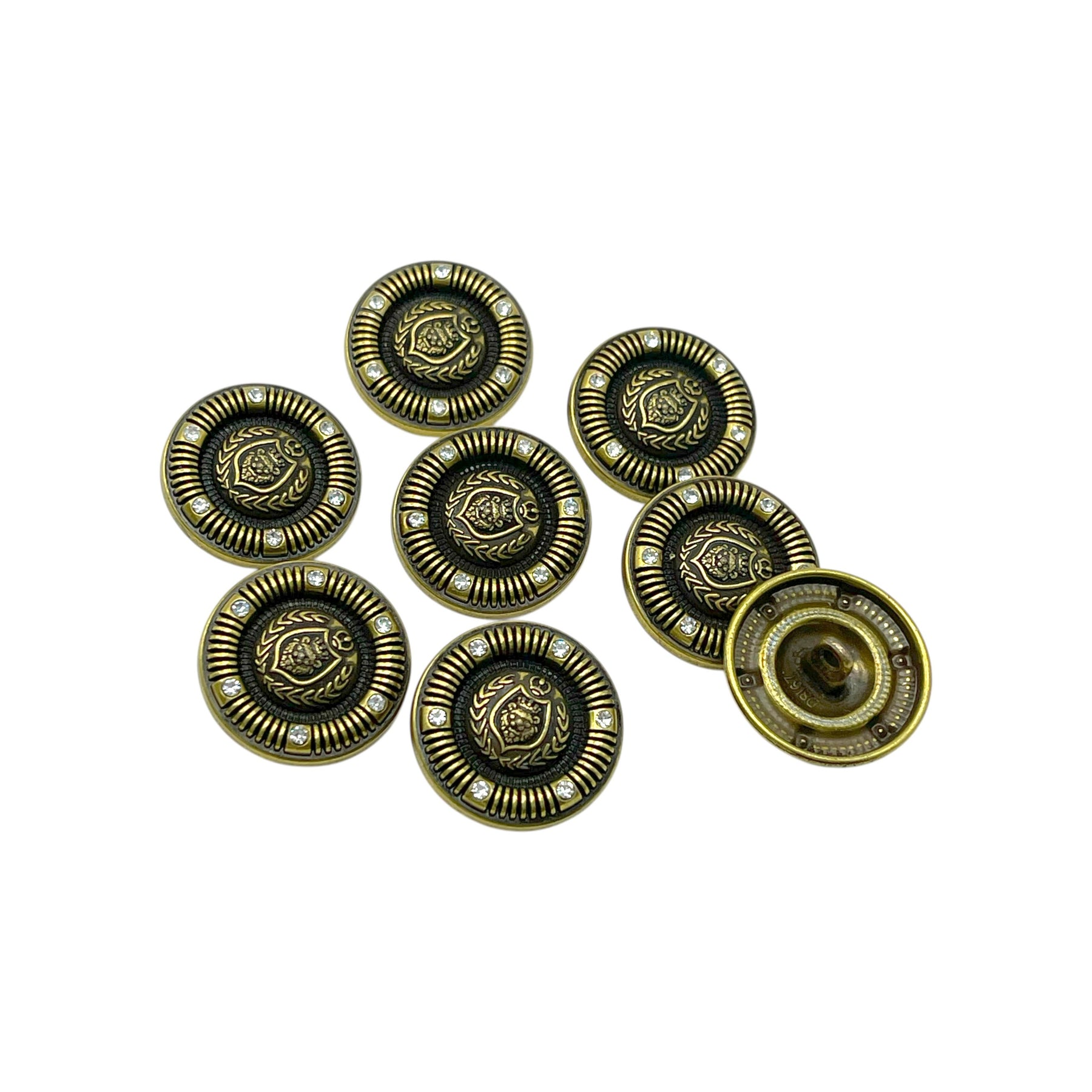 Enhance your garments with Heraldic Lion Crest Rhinestones Buttons, perfect for adding a premium, eye-catching look. These buttons are both stylish and durable, and come in an antique gold, silver & gold color with an edge-to-edge design, crafted from premium, high-quality metal.